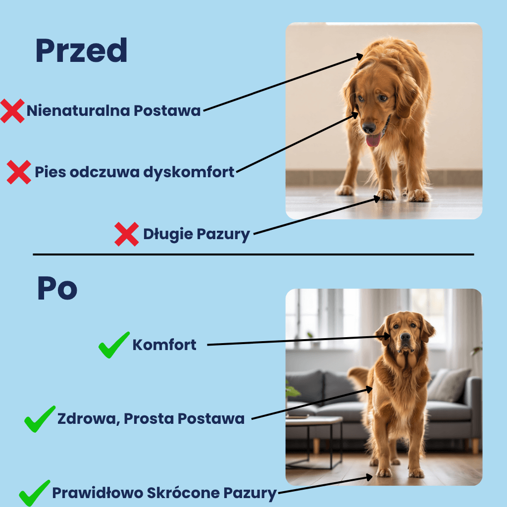 Jeśli twój pies należy do dużych ras (np. Labrador, Owczarek, Dog) i posiada bardzo grube i twarde pazury, należy zachować ostrożność. Obcinacze typu gilotynowego, takie jak LedKlinch, mogą nie być wystarczająco wytrzymałe ani szerokie, aby zapewnić czyste i komfortowe cięcie tak masywnych pazurów. W takim przypadku, cięcie może wymagać użycia zbyt dużej siły lub, co gorsza, ostrze może nie objąć całego pazura. Dla psów z wyjątkowo twardymi i grubymi pazurami zalecamy korzystanie z cążków typu kleszcze (szczypce). Są one zaprojektowane, by radzić sobie z większą siłą i twardością.