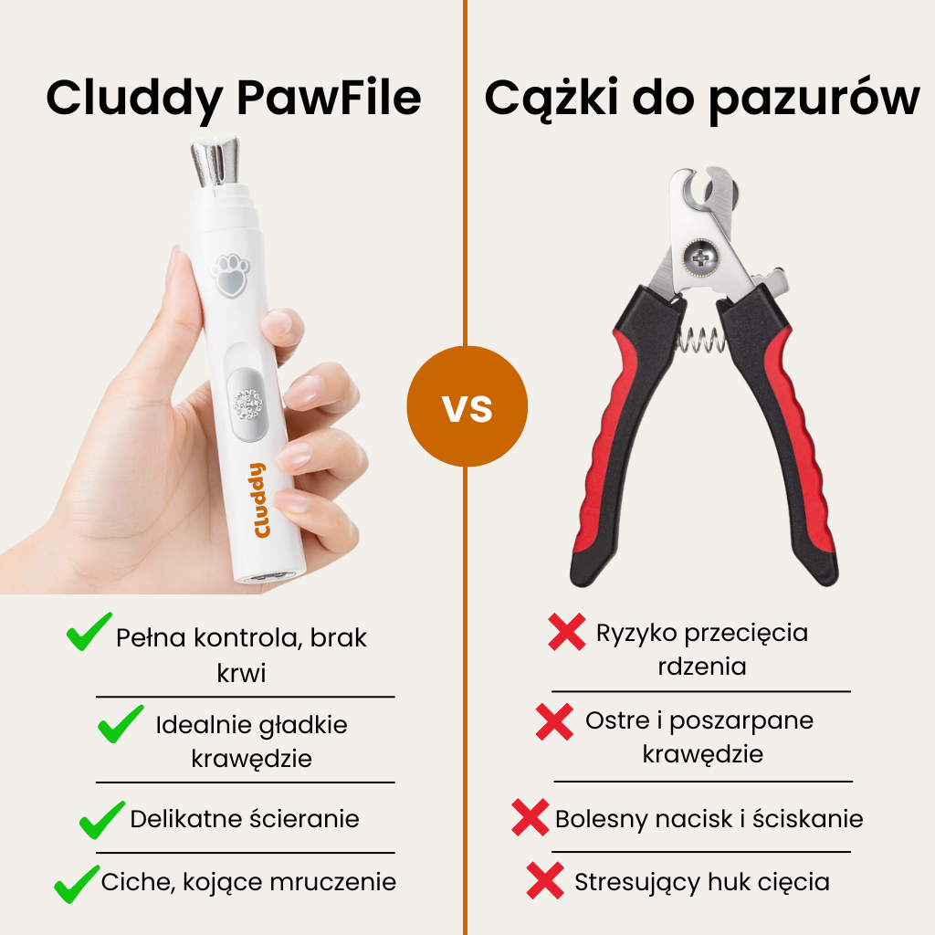Zapomnij o walce z psem i nerwach przy każdym skracaniu pazurów. Nasz Cluddy PawFile zamienia stresujący obowiązek w chwilę relaksu i pełnego bezpieczeństwa.